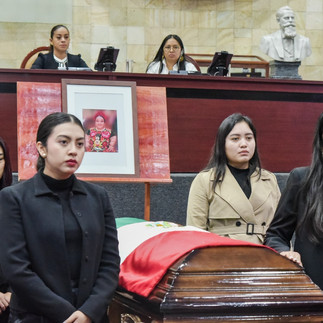 En punto de las 09:20 horas, los restos mortales de la congresista del partido político de Morena fueron llevados al pleno del Congreso local, en donde se guardó un minuto de silencio, se efectuó el último pase de lista y se montaron tres guardias de honor.
