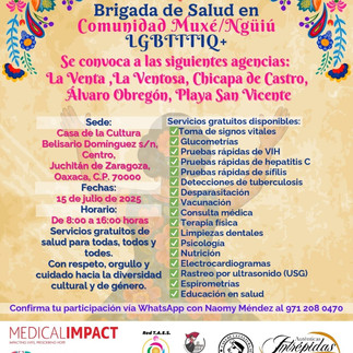 Por su parte, el director de Desarrollo Institucional y Vinculación Estratégica de Medical Impact, José Alberto Cernicchiaro Guadarrama, subrayó que el compromiso de la organización es llevar servicios de salud con perspectiva de género, calidez y calidad a quienes más lo necesitan; “agradecemos su colaboración para hacer posible esta acción en favor de los derechos y la salud de la comunidad Muxé/Ngüiú”.