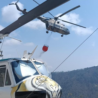 En esta conflagración se llevaron a cabo operaciones aéreas mediante las aeronaves modelo Bell UH-1H del Gobierno del Estado y MI-17 de la Secretaría de Marina (Semar), que efectuaron sobrevuelos de evaluación y 251 descargas de agua equivalentes a 461 mil 750 litros.
